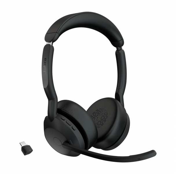 Jabra Evolve2 55 - Link380c UC Stereo. Product type Headset. Connectivity technology Wireless, Bluetooth. Recommended usage Office/Call center. Headphone frequency 20 - 20000 Hz. Wireless range 30 m. Cable length 1.2 m. Weight 130 g. Product colour Black