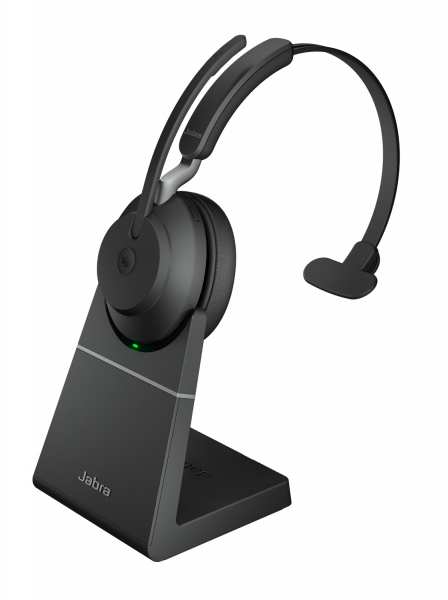 Jabra Evolve2 65, MS Mono. Product type Headset, Wearing style Head-band, Recommended usage Office/Call center. Connectivity technology Wireless, USB connector USB Type-A, Bluetooth profiles A2DP,AVRCP,HFP,HSP,PBAP,SSP. Ear coupling Supraaural, Headphone frequency 20 - 20000 Hz, Maximum input power 30 mW. Microphone type Boom, Microphone frequency 100 - 8000 Hz, Microphone sensitivity -26 dB. Battery type Built-in battery, Battery technology Lithium-Ion (Li-Ion), Battery life (max) 37 h