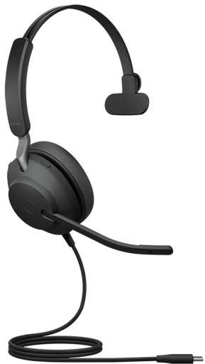 Jabra Evolve2 40 SE. Product type Headset. Connectivity technology Wired. Recommended usage Calls/Music. Headphone frequency 20 - 20000 Hz. Weight 113 g. Product colour Black