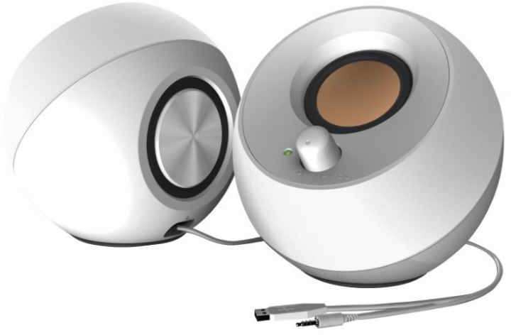 Creative Labs Pebble. Recommended usage PC, Audio output channels 2.0 channels, Number of drivers 2. Connectivity technology Wired, Speaker interface type 3.5 mm. RMS rated power 4.4 W, Frequency range 100 - 17000 Hz. Colour of product White