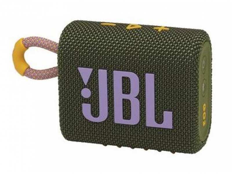 JBL GO 3. RMS rated power 4.2 W, Frequency range 110 - 20000 Hz, Signal-to-Noise Ratio (SNR) 85 dB. Connectivity technology Wireless, Bluetooth profiles A2DP,AVRCP, Bluetooth transmitter modulation 8DPSK,DQPSK,GFSK. Product colour Green, Volume control Buttons, Protection features Dust resistant, Waterproof. Country of origin Vietnam. Battery type Built-in battery, Battery technology Lithium Polymer (LiPo), Battery capacity (Watt-hours) 2.7 Wh