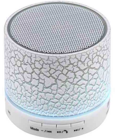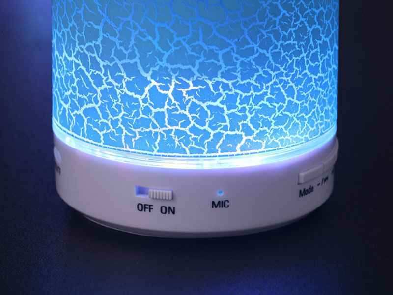LED Light Colorful LED Light Pattern Crack Pattern Operating Mode Button Function Bluetooth Audio Play, Bluetooth Hand-Free, FM Interface USB, USB/AUX, 3.5mm AUX, TF Card Slot Bluetooth Version 2.1 Operating Distance 10m (without sealed obstacles) SNR >80dB Battery Capacity 350mAh Frequency 90Hz-20KHz Distortion Speaker Output Power 3W Working Voltage DC3.7V-4.2V Speaker Diameter 40mm Impedance 4ohm Play Time About 2h Charging Voltage DC5V Support Audio Format MP3 Size 60x60x50mm Color Black