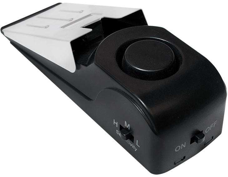 Prevent doors from opening and alerts you of an attempted entry Alarm siren sounds at 120 dB Easy security system for dorms, hotels, apartments or bedrooms Trigger has three levels of sensitivity at high, medium and low Use as a door stop when power is off Battery 9V (not included) High Quality durable ABS plastic and stainless Steel Cover Dimensions 138 x 46 x 40 mm Weight 150g
