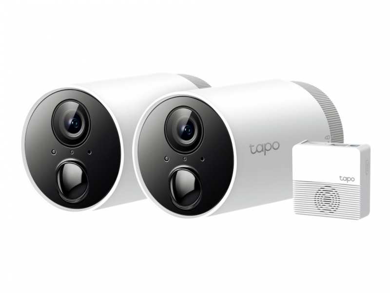 TP-Link Tapo Smart Wire-Free Security Camera System, 2-Camera System. Type IP security camera, Placement supported Indoor & outdoor, Connectivity technology Wired & Wireless. Mounting type Wall, Product colour Black, White, Form factor Bullet. Optical sensor size 25.4 / 3 mm (1 / 3). Fixed focal length 3.15 mm. Night vision distance 15 m, LED type IR, Infra-red wavelength 850 nm