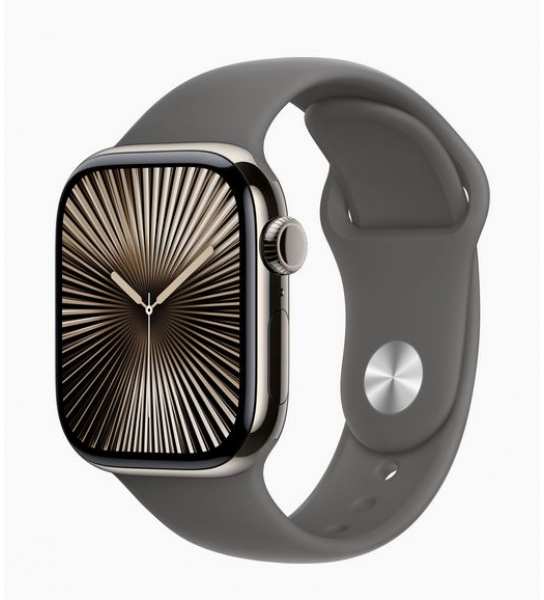 Apple Watch Series 10 GPS+ Cellular 42mm Natural Titanium Case with Stone Grey Sport Band - Smartwatch