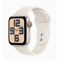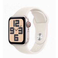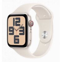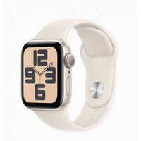 Apple Watch SE. Display technology OLED, Display resolution 324 x 394 pixels, Touchscreen. Flash memory 32 GB. Wi-Fi. GPS (satellite). Weight 26.4 g. Waterproof up to 50 m, Band colour Starlight, Band size S/M. Operating system installed watchOS 9
