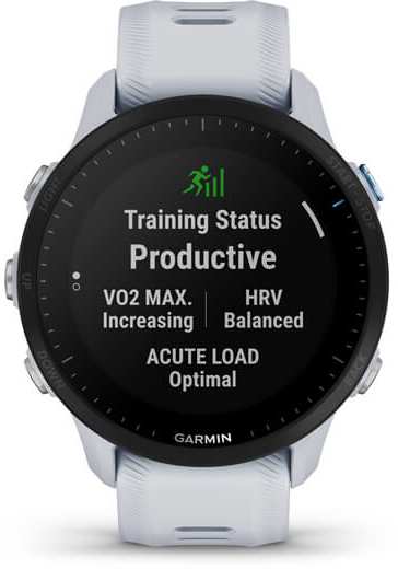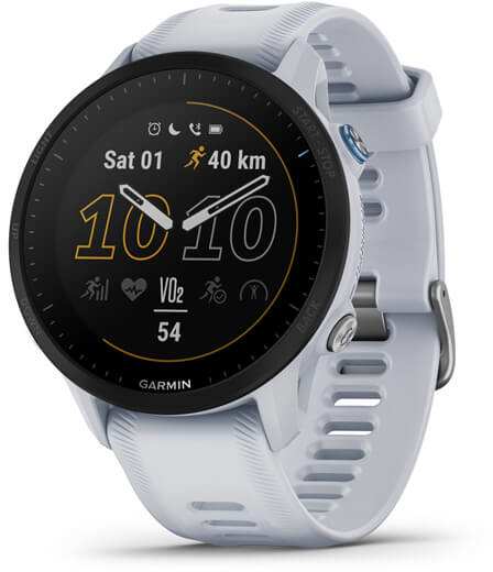 Garmin Forerunner 955. Display diagonal 3.3 cm (1.3), Display technology MIP, Display resolution 260 x 260 pixels, Touchscreen. Flash memory 32 GB. Wi-Fi. GPS (satellite). Weight 52 g. Band colour White, Band size One Size