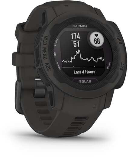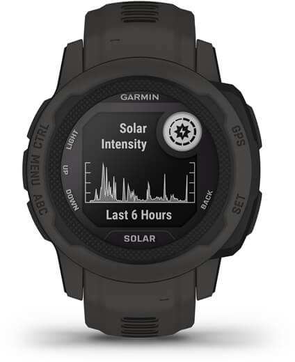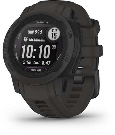 Garmin Instinct 2S Solar. Display diagonal 2.01 cm (0.79), Display technology MIP, Display resolution 156 x 156 pixels. GPS (satellite). Weight 43 g. Waterproof up to 100 m, Band material Silicone, Band colour Graphite, Band size One Size