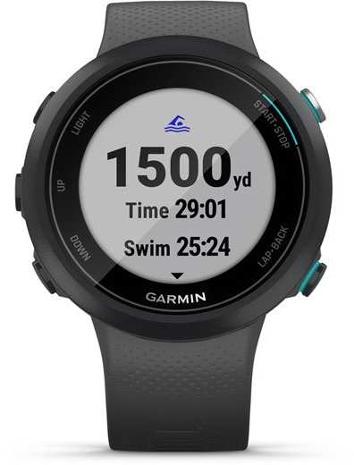 Garmin Swim 2. Display diagonal 2.64 cm (1.04), Display technology MIP, Display resolution 208 x 208 pixels. GPS (satellite). Weight 36 g. Waterproof up to 50 m, Band material Silicone, Band colour Black