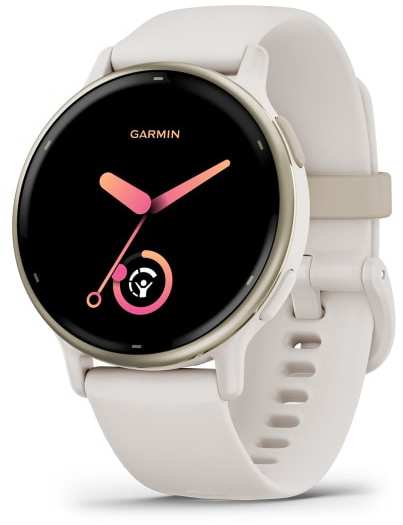 Garmin Vivoactive 5. Display diagonal 3.05 cm (1.2), Display technology AMOLED, Display resolution 390 x 390 pixels, Touchscreen. Flash memory 4 GB. Wi-Fi. GPS (satellite). Weight 36 g. Band material Silicone, Band colour White, Band size One Size