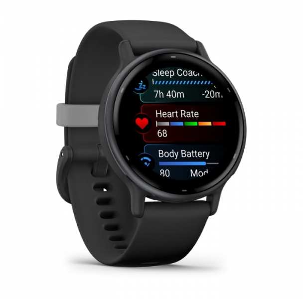 Garmin Vivoactive 5. Display diagonal 3.05 cm (1.2), Display technology AMOLED, Display resolution 390 x 390 pixels, Touchscreen. Flash memory 4 GB. Wi-Fi. GPS (satellite). Weight 36 g. Band material Silicone, Band colour Black, Band size One Size