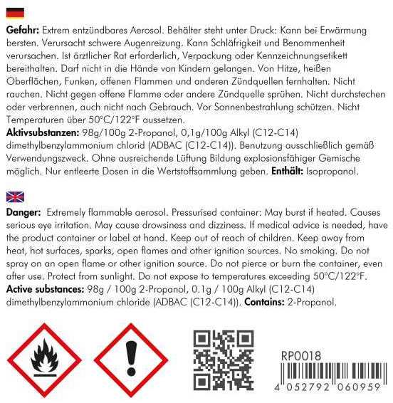 Application Thoroughly clean and dry hands before use. Spray the contents of the spray onto the palms of the hands from a distance of approx. 15 cm and distribute thoroughly by rubbing until the hands are completely wetted. For a bactericidal effect, hold palms completely moistened for 30 seconds and for a virucidal effect for at least 60 seconds. The spray can be used several times a day, as required. Avoid eye contact with the active ingredient. Do not inhale spray.