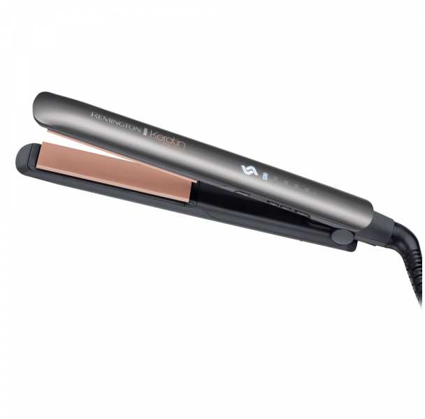 Remington S 8598. Type Straightening iron, Technology Warm, Temperature (max) 230 °C. Product colour Black, Grey. Cord length 3 m, Auto power off after 60 min. Temperature 160 °C. Plate width 11 cm