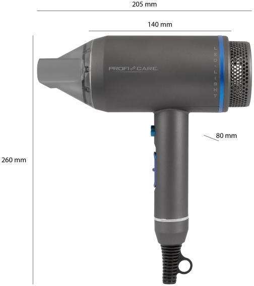 With the compact PC-HT 3082 from ProfiCare with stylish LED lighting, you get a powerful and modern hairdryer that gently dries and cares for your hair. The device offers you an ionization function for better manageability thanks to the anti-static effect.