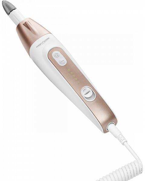 Practical device for the cosmetic care of your hands and feet 7 different attachments 1 polishing attachment, 2 nail file attachments (rough/fine), 2 large grinding cones (round/flat), 1 small grinding cones, 1 small grinding cylinder Extra long spiral cable space-saving, but maximum flexibility in the operation Electronic speed control (5 steps) Right/left-handed rotation for comfortable working Mains operation with powerful transmission (approx. 2000-5000 revolutions) Softtouch switch Includes light for precise, controlled work Practical storage box Power supply Input 100240 V, 50/60 Hz 0,3 A Output 30 V, 250 mA