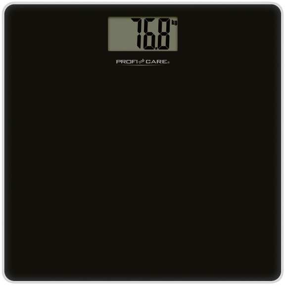ProfiCare glass personal scales black. Provides an accurate and reliable way to monitor your weight. With its high-quality LCD display, it is easy to read and you can switch the unit of measurement according to your preference - be it kilograms, pounds or stones. With a generous measuring range of 5 to 180 kg in 100 g increments, this digital scale is suitable for all family members.