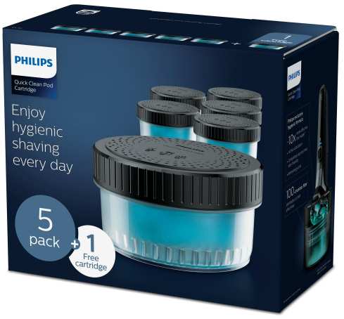Philips Quick Clean Pod Cartridge CC16/50 6-pack cleaning cartridges for electric shaver heads. Product type Cleaning cartridge, Replace after 18 month(s), Brand compatibility Philips. Quantity per pack 6 pc(s)