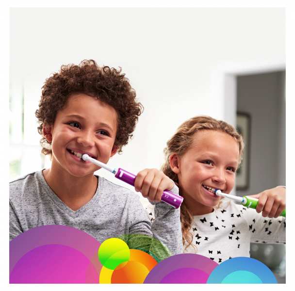 Oral-B Junior 6+. Purpose Child, Product colour Purple, White, Timer duration 2 min, 30 sec. Power source Battery. Number of handles included 1 pc(s)