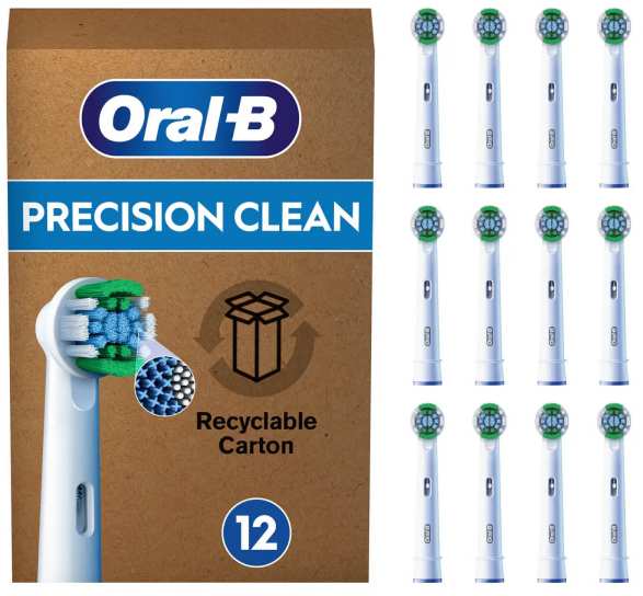 Oral-B Precision Clean . Number of brush heads included 12 pc(s), Product colour White, Cleansing brush replacement(s) period 3 month(s). Package type Box