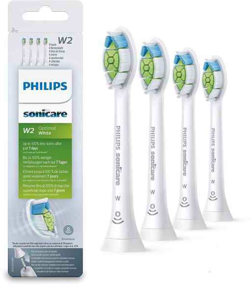 Brush heads 4 W2 Optimal White Bristle stiffness feel Regular Colour White Suitable for these models 2 Series plaque defence ,2 Series plaq defence, 3 Series gum health ,DiamondClean ,DiamondClean Smart,EasyClean ,Essence+, FlexCare ,FlexCare Platinum ,FlexCare Platinum Connected ,FlexCare+, for Kids, HealthyWhite ,HealthyWhite+, PowerUp, ProtectiveClean Reminder bristles Blue bristle colour fades away Size Standard Replacement Every 3 months Tested for optimal usage Gum health Helps improve gum health Plaque removal Removes up to 7x more Plaque Whitening Whiter teeth in just one week Brush head system Click-on BrushSync mode pairing Yes
