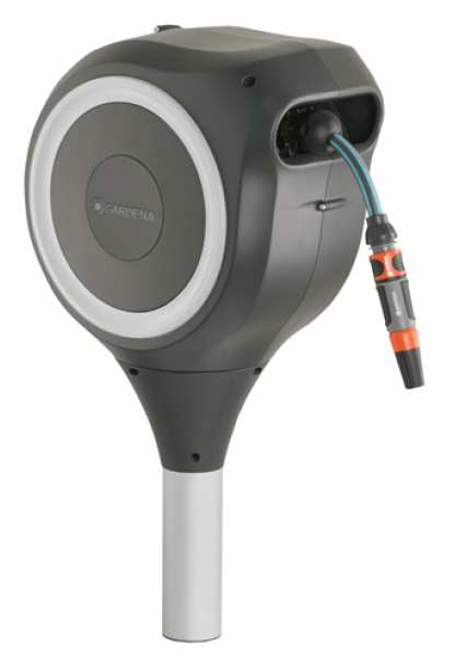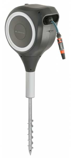 Features Product type Ground-standing reel Hose reeling type Automatic Product design Functional Product colour Black, Grey Pivot angle 0 - 360 ° AquaStop function Y Weatherproof Y Packaging content Hose included Y Feeding hose included Y Hose length 15 m Feeding hose length 1.5 m Fittings included Y Spray nozzle included Y Mounting bracket(s) included Y