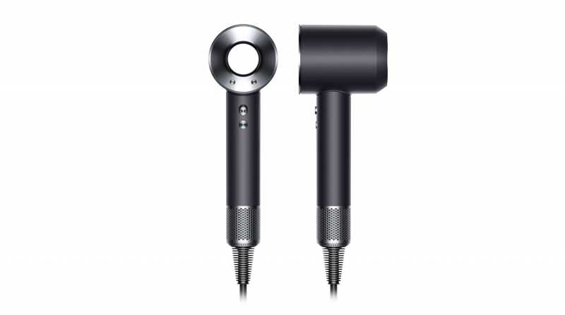Dyson Supersonic Black/Nickel. Motor speed 110000 RPM, Airflow 13.3 l/s, Noise level 77 dB. Product colour Black, Nickel, Surface coloration Monochromatic, Cord length 2.8 m. Power 1600 W, Input voltage 230 V. Width 78 mm, Depth 97 mm, Height 245 mm. Package width 135 mm, Package depth 388 mm, Package height 179.5 mm