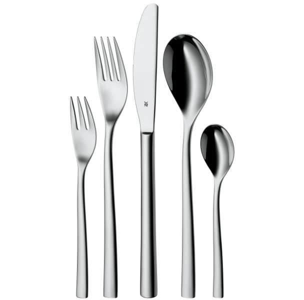 Technical details Number of persons 12 person(s) Set per person Cake fork,Table fork,Table knife,Tablespoon,Teaspoon Number of products included 60 pc(s) Material Stainless steel Handle material Stainless steel Product colour Stainless steel Number of knives 12 Number of tablespoons 12 pc(s) Number of teaspoons 12 Dishwasher proof Y Designer WMF Atelier (Peter Ramminger) Vendor collection name Palermo Country of origin Germany Weight & dimensions Package width 490 mm Package depth 390 mm Package height 50 mm Package weight 3.8 kg