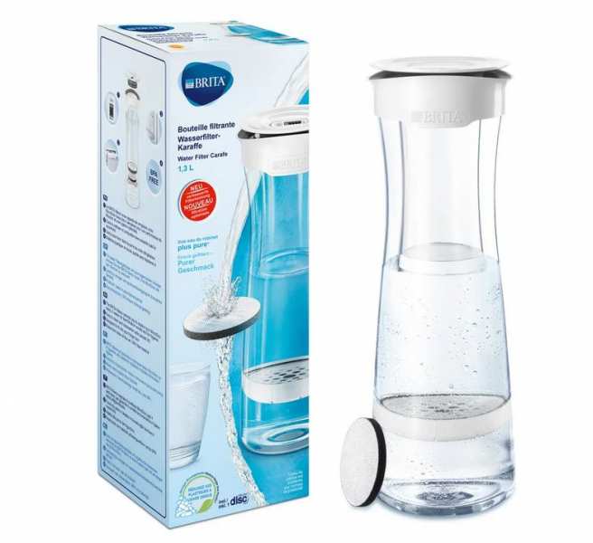 Brita Fill&Serve. Water filter type Water filtration bottle, Product colour Transparent, White, Water tank capacity 1.3 L. Height 290 mm, Diameter 10.2 cm, Weight 440 g