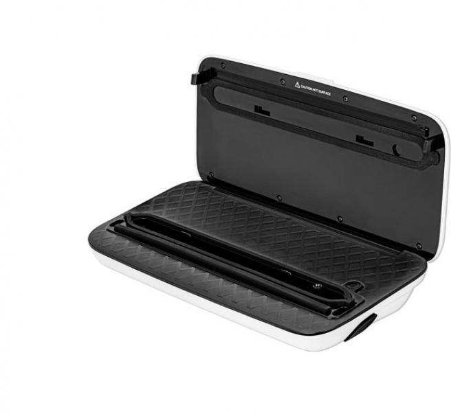 Possibility to pack liquid or soft products (e.g. soups, pies, desserts) Electronic control panel with displays Sealing rod 29cm Lid lock buttons Non-slip rubber feet Air pump pressure - 450 mmHg (-0.6 bar) +/- 5% Air pump capacity - 3.5 l/min 220-240 V 50-60 Hz power 110W