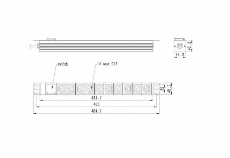EnerGenie Power Distribution Unit PDU 10pcs C13 Sockets 1U 16A C19 Plug 2m Cable