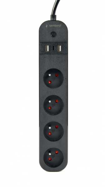 Gembird TSL-PS-F4U-01. AC outlets quantity 4 AC outlet(s), Power plug type Type F, Cable length 1.5 m. Maximum input power 3680 W, AC input voltage 220 - 240 V, AC input frequency 50 Hz. Width 57 mm, Depth 42 mm, Height 294 mm. Wi-Fi standards 802.11b, 802.11g, Wi-Fi 4 (802.11n), USB port type USB Type A/USB Type-C