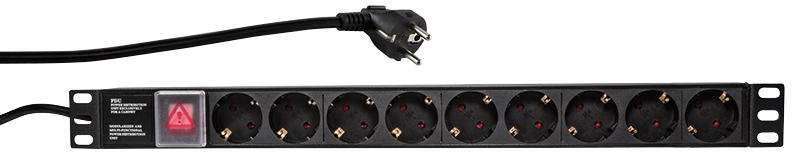 LogiLink PDU9C02 - Vertical - Aluminium - Black - 9 AC outlet(s) - 2 m - 250 V - 48.26 cm (19) - 9 sockets DIN49440 - H05VV-F 3x 1.5 mm² - 250VAC - 50-60Hz - 16A - 3500W - Black