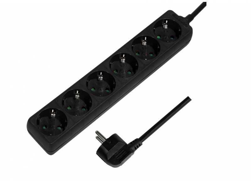 LogiLink LPS238B - 1.5 m - 6 AC outlet(s) - Indoor - IP20 - Black - 250 V - Socket outlet 6-way - 1.5m - black