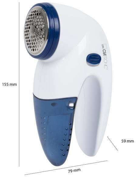 Textile mini-cleaner for the effective removal of lint and small nodules (pilling) Can be used for almost all items of clothing such as Wool, cotton, flannel,Synthetic fibers, etc. 1 Also suitable for blankets, carpets, bed linen or seat covers 1 High quality stainless steel shaving foil (approx. 45 mm) 3-way spring-loaded stainless steel knife (removable for easy cleaning) Comfortable one-hand operation Small and handy (also ideal for on the go) Removable and easily washable lint container On / off switch Accessories cleaning brush, cover cap Large, removable and easily washable lint container Battery operated 2 x 1.5 V AA (batteries not included)