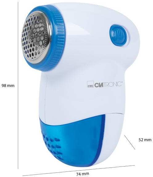 Textile mini-cleaner for the effective removal of lint and small nodules (pilling) Can be used for almost all items of clothing such as Wool, cotton, flannel,Synthetic fibers, etc. 1 Also suitable for blankets, carpets, bed linen or seat covers 1 High quality stainless steel shaving foil (approx. 32 mm) 3-way spring-loaded stainless steel knife (removable for easy cleaning) Comfortable one-hand operation Small and handy (also ideal for on the go) Removable and easily washable lint container On / off switch Accessories cleaning brush, cover cap Battery operated 2 x 1.5 V AA (batteries not included)