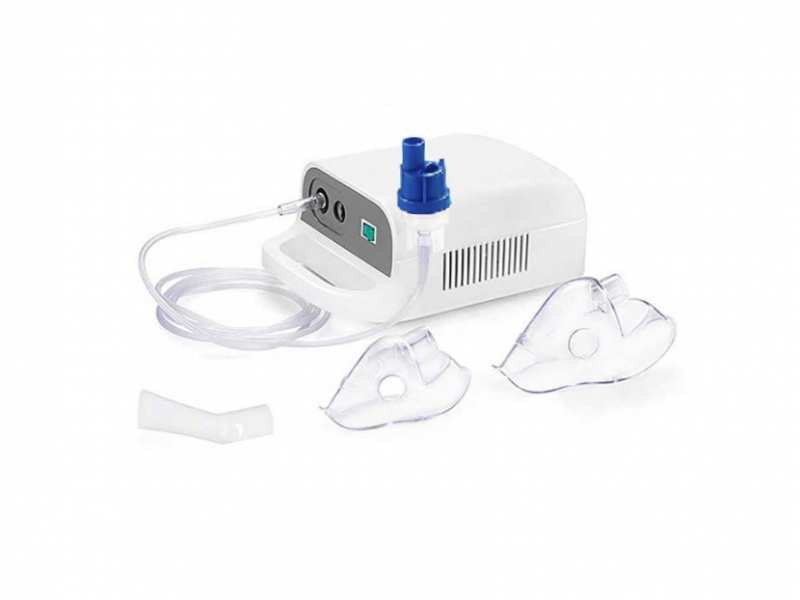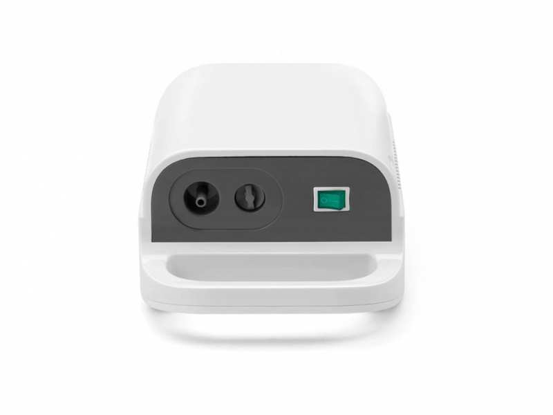 Capacity of nebuliser chamber max. 6 ml Maximum pressure 2.3 bar Particle size MMAD (50%) 2 masks for children and adults Air hose, 2 metres Noise level 65 dB Mains connection 230V Fast and quiet for frequent use at home