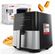 XXL-Kapazität ca. 5,0 Liter Öl- und fettfreie Heißluft-Fritteuse Edelstahlfront 8 Automatikprogramme inkl. individueller Zeit-/Temperatureinstellung Geringe Rauch- und Geruchsentwicklung Zeit- und energiesparende Zubereitung Cool Touch-Griff LED-Display mit Sensor Touch-Bedienung Antihaftbeschichteter Behälter Stufenlos regelbarer Thermostat (80 °C200 °C) Abschaltautomatik Überhitzungsschutz 220240 V, 50/60 Hz, 1450 W