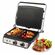 Barbecue grill - 180° opening allows grilling on double surface area 2000 watts Stainless steel case Infinitely adjustable thermostat Short cooking times Large, heat-insulated handle with soft touch insert On/off switch 2 indicator lights for power and heating Temperature Ready display Large grill areas 23 x 29 cm 220-240V, 50/60Hz, 2000W