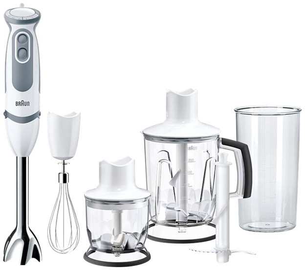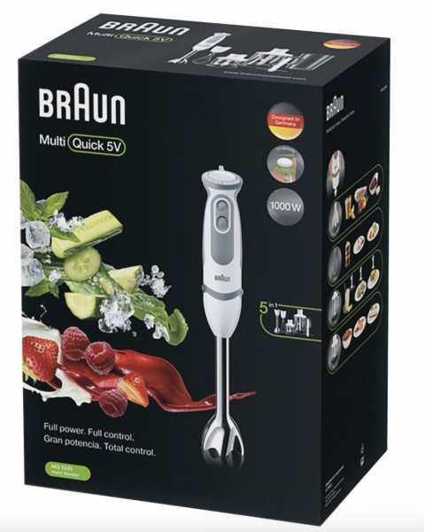 Braun MultiQuick 5 MQ5245WH. Bowl capacity 1.25 L, Chopper bowl capacity 0.35 L. Type Immersion blender, Product colour Grey, White, Country of origin Romania. Blending bowl material Plastic. Power 1000 W, Power source AC