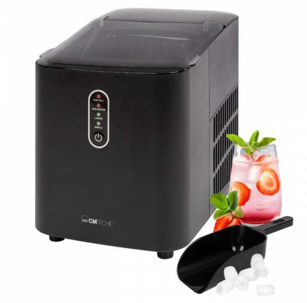 Compact ice cube maker without complex installation for quick and easy production of ice cubes at the push of a button Ideal for camping, in the office, at home or even for home bars No water supply necessary, simply fill drinking water into the tank (1.1 liter water tank) Approx. 8-10 kg of ice cubes in 24 hoursLED displays and beep when the ice cube tray is full and the water tank is empty Energy saving mode automatic switch-off after program completion Electronic control (START/STOP) Visual control through viewing window in the lid Low noise Power supply 220-240 V, 50 Hz Power consumption 120W