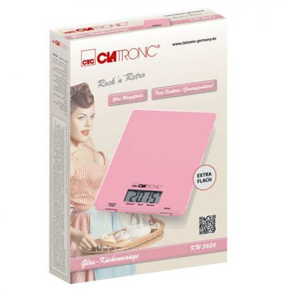 The Clatronic kitchen scale has an extra flat surface made of high quality glass. The scale surface also has an easy-to-read LCD display. The rubberized feet of the balance ensure a secure footing. This also has a tare function, which allows you to weigh the items with more precision.