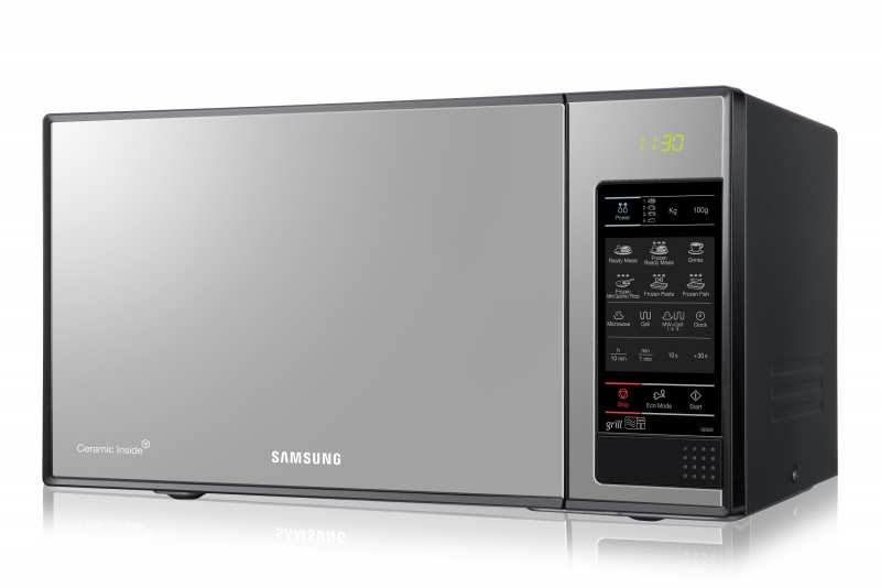 Samsung GE83X. Appliance placement Countertop, Product type Grill microwave, Interior capacity 23 L. Connected load 1200 W, AC input voltage 230 V, AC input frequency 50 Hz. Width 489 mm, Depth 354 mm, Height 275 mm