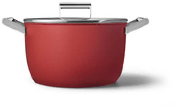 Smeg 26cm Red 50's Style Casserole - CKFC2411RDM. Capacity 7.7 L, Product colour Black, Red, Material Aluminium, Stainless steel. Diameter 26 cm, Width 378 mm, Depth 274 mm. Package width 435 mm, Package depth 339 mm, Package height 212 mm. Layers per pallet 8 pc(s), Country of origin Italy, Products per pallet layer 6 pc(s)