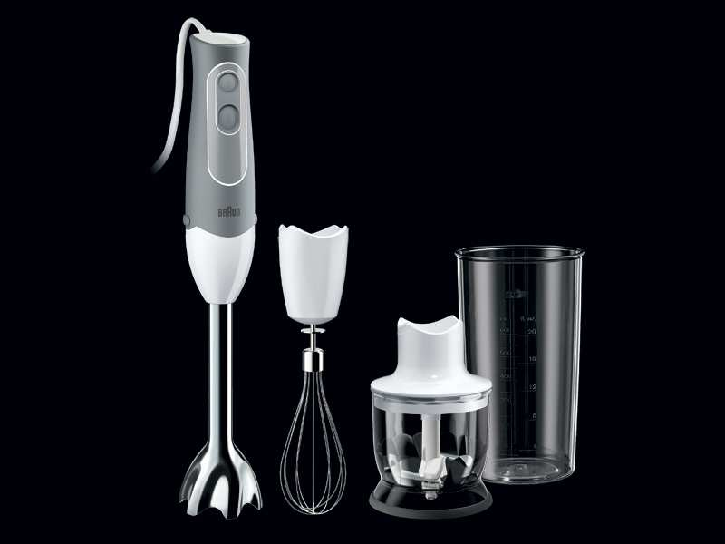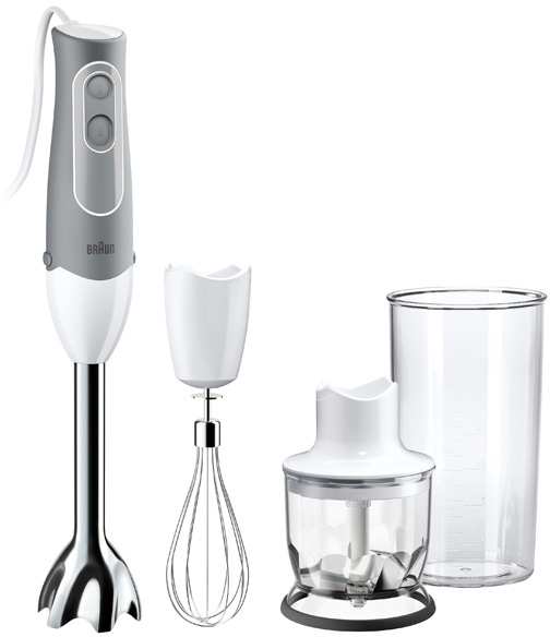 Braun MQ 525. Bowl capacity 0.6 L, Rotational speed (max) 12500 RPM. Type Immersion blender, Product colour Grey,White. Blending bowl material Plastic, Shaft material Stainless steel, Material knife Stainless steel. Power 600 W