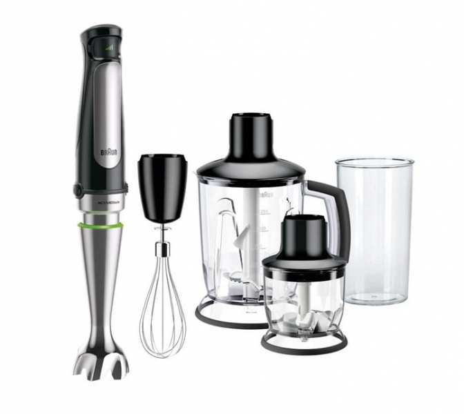 Braun MultiQuick 7 MQ 7045X. Bowl capacity 1.25 L, Speed control type Stepless, Control type Buttons. Type Immersion blender, Product colour Black, Stainless steel, Cord length 1.2 m. Blade material Stainless steel. Power 1000 W, Power source AC. Width 68 mm, Depth 68 mm, Height 390 mm