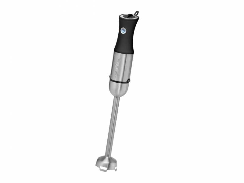 Stainless steel housing with ergonomic soft touch handle Powerful longlife professional motor (1000 watt) 4-way stainless steel blade Extra long stainless steel mixing rod Extra wide mixing head Infinitely variable speed control Push button (illuminated in blue) Incl. stainless steel whisk Extra long spiral cord (space-saving) Removable stainless steel mixing rod (easy to clean) 220-240 V, 50/60 Hz, 1000 W