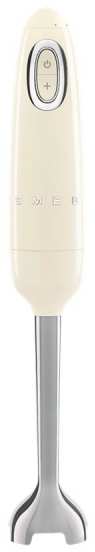 Smeg HBF11CREU. Rotational speed (min) 8150 RPM, Rotational speed (max) 14850 RPM, Speed control type Step. Type Immersion blender, Product colour Cream, Stainless steel, Cord length 1.5 m. Housing material Plastic, Stainless steel, Handle material Plastic, Blade material Stainless steel. Power 700 W, Power source AC. Width 65 mm, Depth 65 mm, Height 414 mm