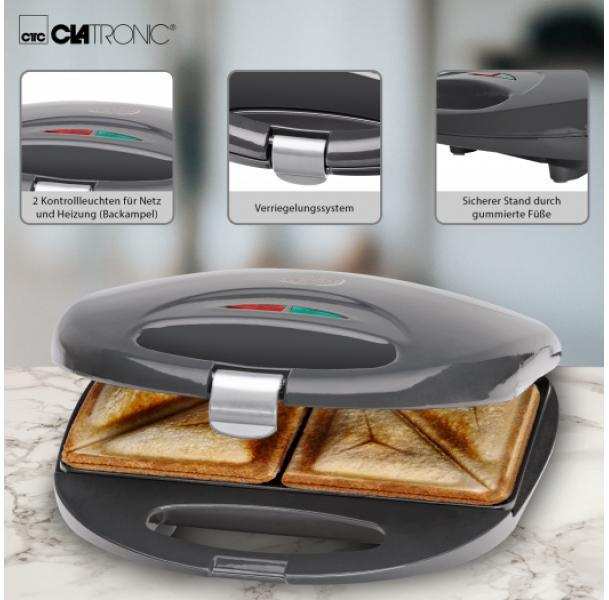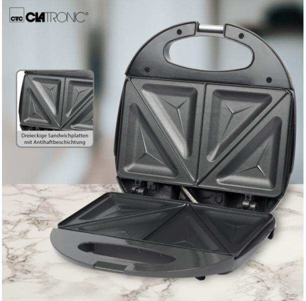 The Clatronic sandwich toaster has triangular sandwich panels, a heat-insulating handle and an automatic temperature control. Very suitable for every household.