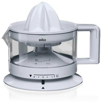 Power Power 20 W AC input voltage 220-240 V AC input frequency 50 Hz Features Product colour Transparent, White Bowl Y Bowl capacity 0.35 L Removable bowl Y Lid Y Non-slip feet Y Cord storage Y Handle(s) Y Juice container Y Easy to clean Y Dishwasher-proof parts Y On/off switch Y Adjustable pulp control Y Anti-drip function Y Liquid level indicator Y Automatic on/off Y Double rotation cone Y Certification CE Weight & dimensions Weight 700 g Package width 170 mm Package depth 170 mm Package height 170 mm Package weight 800 g Packaging content Manual Y