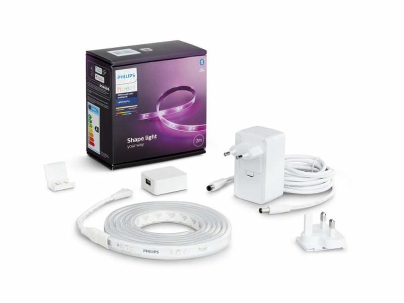 Philips Hue White and colour ambience Lightstrip Plus base V4 2 metre. Type Smart strip light, Product colour Multicolour, Interface Bluetooth/Zigbee. Power consumption (standby) 0.5 W, AC input voltage 220-240 V. Width 14.5 mm, Depth 2000 mm, Height 5.5 mm. Package type Box, Package width 140 mm, Package depth 75 mm. Quantity per pack 1 pc(s)